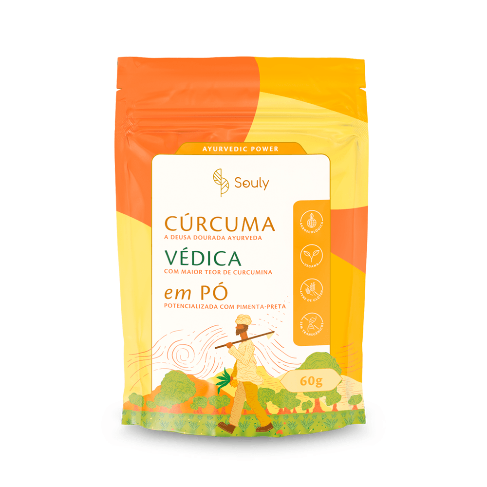 Por isso, ao incorporar a Cúrcuma Védica da Souly à sua rotina, você contará com propriedades naturais que auxiliam no controle de dores, alívio de inflamações, funcionamento digestivo, eliminação de toxinas, combate ao estresse oxidativo, fortalecimento contra infecções, maior proteção à saúde cerebral e cardíaca, manutenção da saúde da pele e muitos outros benefícios desta especiaria dourada.